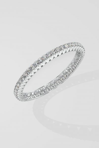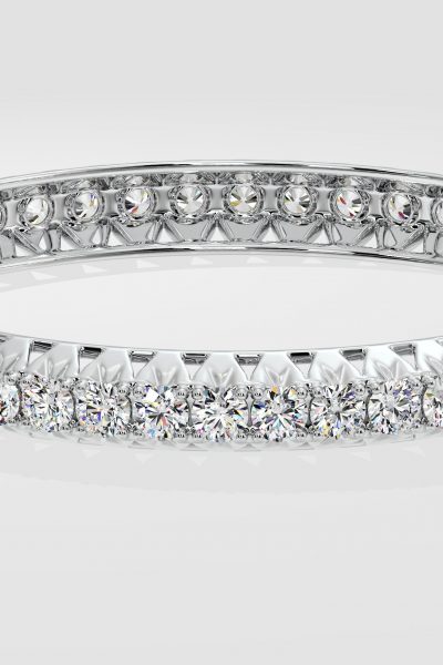 Classic Diamond Bangle, adorned with 0.15 ct diamonds in a graceful gold motif. Available in white or rose gold, each bangle is made to order for the perfect fit, marrying beauty with comfort effortlessly.