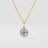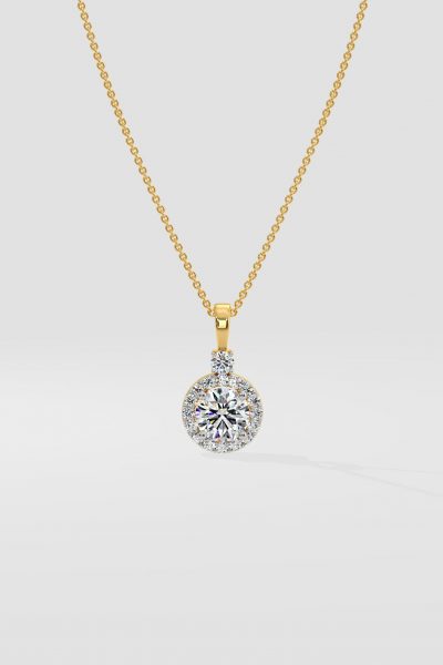 Our 0.75 ct Halo Solitaire Necklace It features a brilliant 0.75 ct round center stone delicately surrounded by a sparkling halo. Ideal for daily wear and gifting to your loved ones.