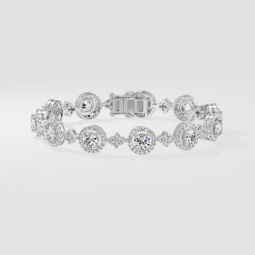 The quintessential Classic Tennis Bracelet is an everyday staple. This 4.9 ct bracelet features 0.08 ct diamonds set in a classic 4 prong setting and is full eternity, i.e. completely studded end-to-end. Available in white or yellow gold option as well.