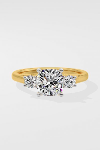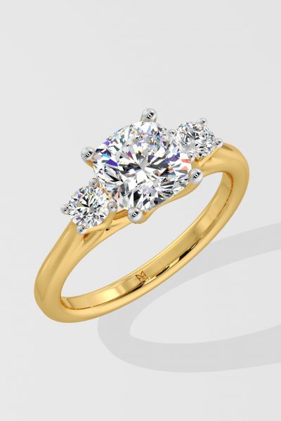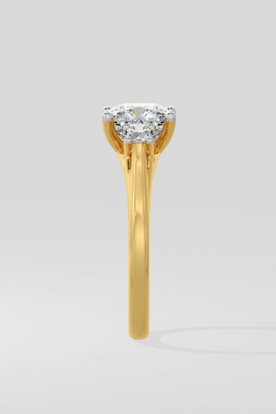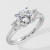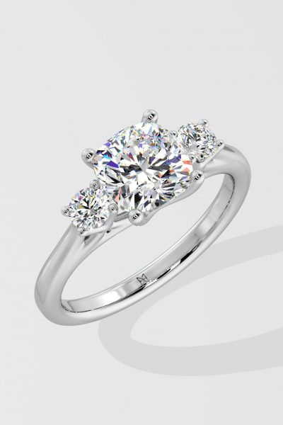 The 1.5ct Trio Cometa Ring features a 1.5ct round center diamond, accentuated by two 0.10ct diamonds on either side. Simple classic eleganace, this is a timeless style.