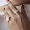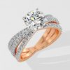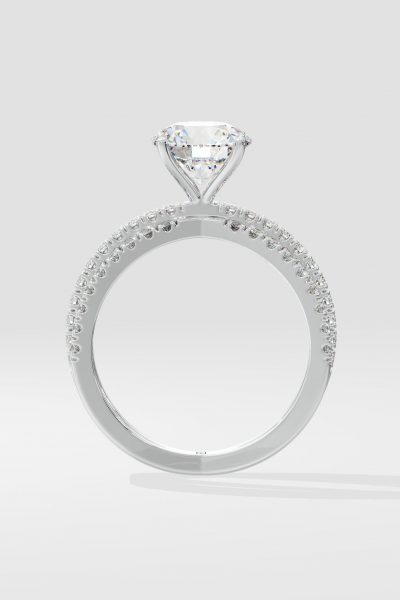 The Triple Crossover features a 1.5 ct round center diamond mounted on the dazzling three row studded band. A statement, an unmissable bling thing and a novel edgy diamond ring : go bold and beyond with all three.