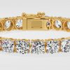 The Classic Round Bracelet, featuring 1-carat each round brilliants. The ultimate diamond dazzler is custom made to your wrist size and chioce of gold colour.
