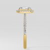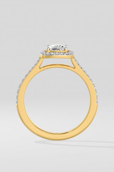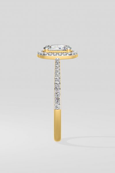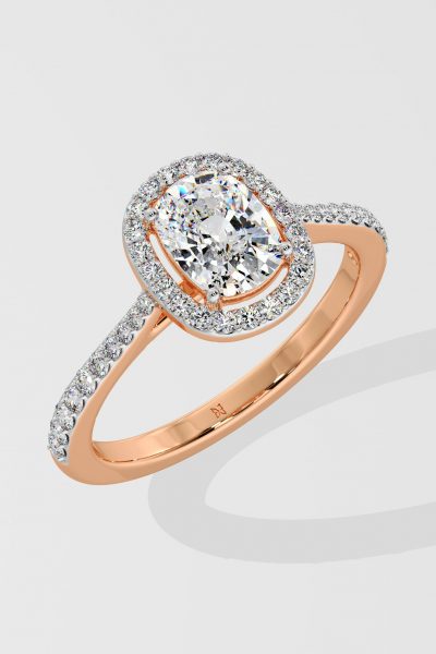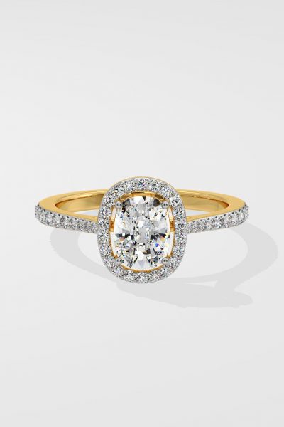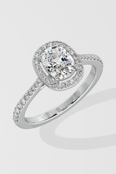 This Halo ring features a stunning 1-carat elongated cushion diamond, encircled by a sparkling halo of smaller diamonds. The elongated cushion is typically more like a rectangle vs a squarish shape of the classic cushion. Not as sharp as a radiant and not as soft as an Oval, this is a beautiful alternate shape option.