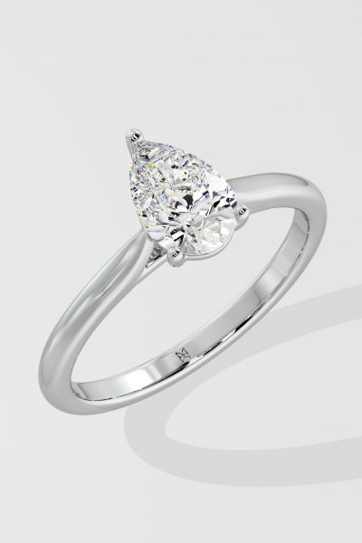 The 1 ct Pear Solitaire Ring features the classic 3-prong setting. It can be a timeless engagement ring or a simple solitaire.