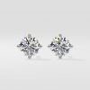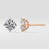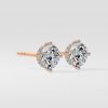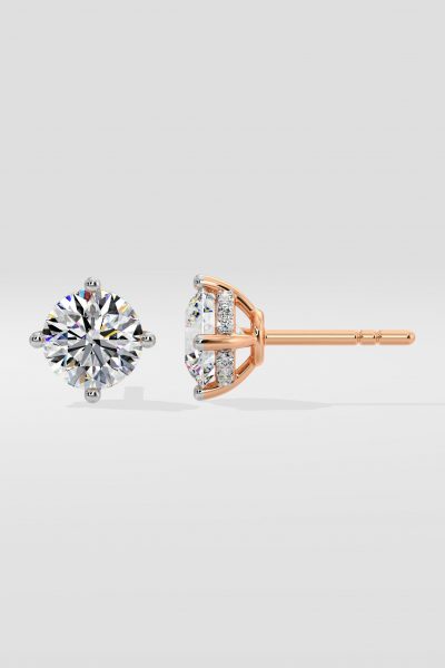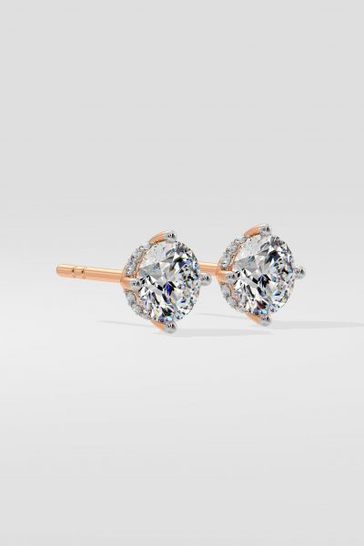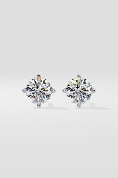 2ct Invisible Halo Solitaire Earrings, featuring a stunning 1ct solitaire diamond at the centre with a seamless invisible halo. The solitaire is held by four prongs.