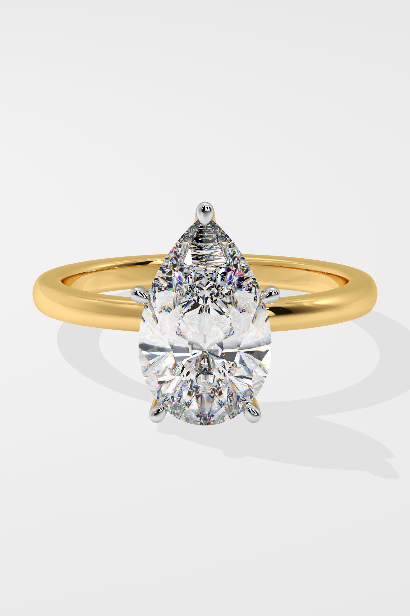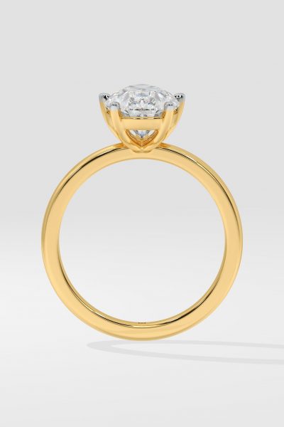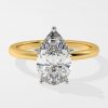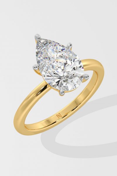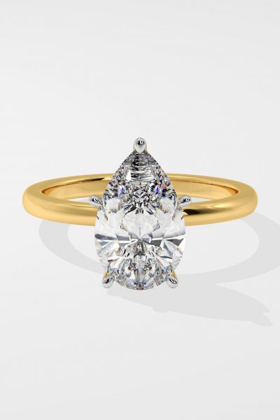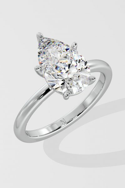 Our 2 ct Pear Solitaire Ring captures features the classic 5-prong setting. The Pear diamond punches above its weight by looking bigger than others. A timeless engagement ring or a statement solitaire, you choose.