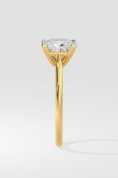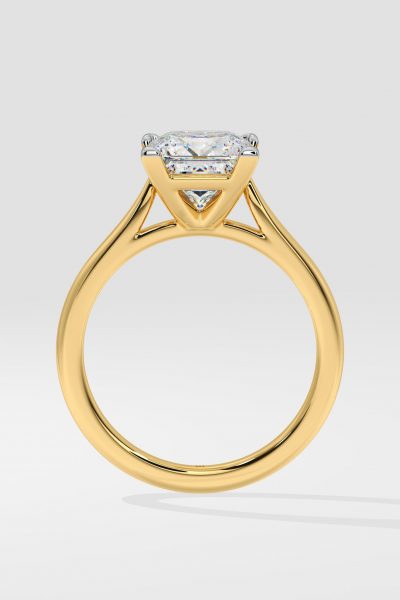 This 2 ct Princess Solitaire Ring features the secure setting of 4 ‘V’ prongs. Minimalist and elegant this is an unmistakable classic and everyday style. The Princess is a brilliant cut and holds that scintillating fire you want in your diamond. For a bolder look: upgrade to a 3 ct center. Will look good in Rose gold as well.