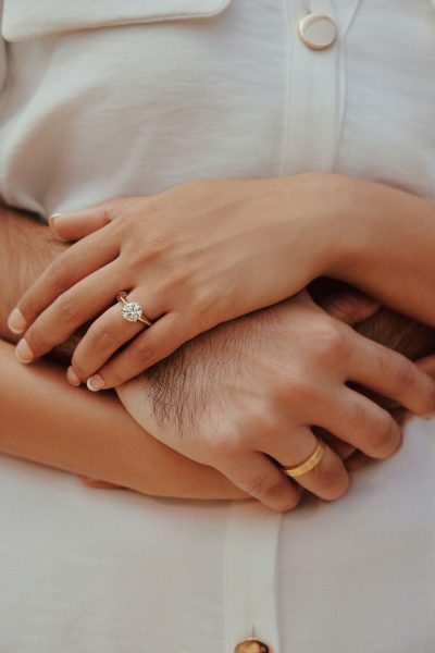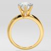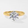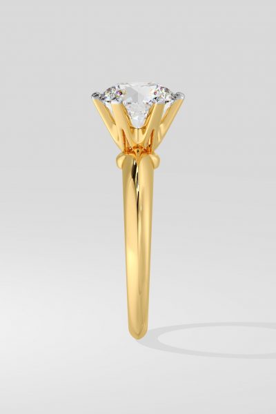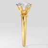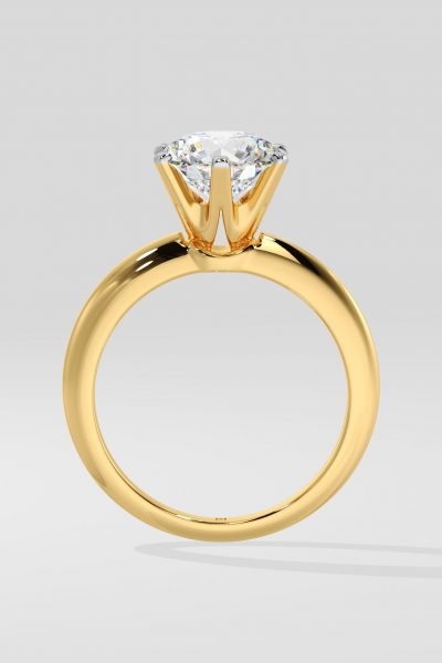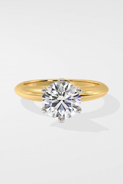 An instant classic, the 6-prong solitaire ring features a beautiful 2 ct center diamond. Also fashioned with the knife-edge band which looks minimal and sleek from the top but is sturdy from the face. An absolute favorite engagement ring; this piece is designed to wear every day. Additionally, stack with an eternity band to complete the look.