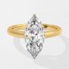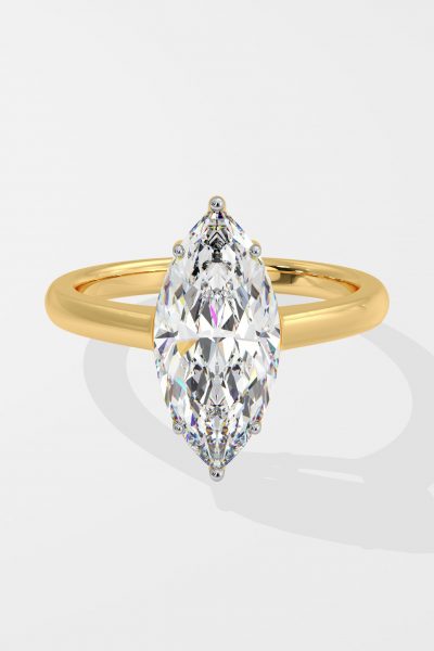 A Classic Solitaire Ring featuring a 3 ct gleaming center. The Marquise shape due to its elongated cut looks much bigger than the ct wt it offers. An eye-popping solitaire or a stunning engagement ring, works beautifully both ways.