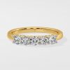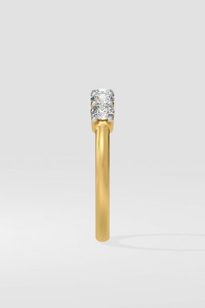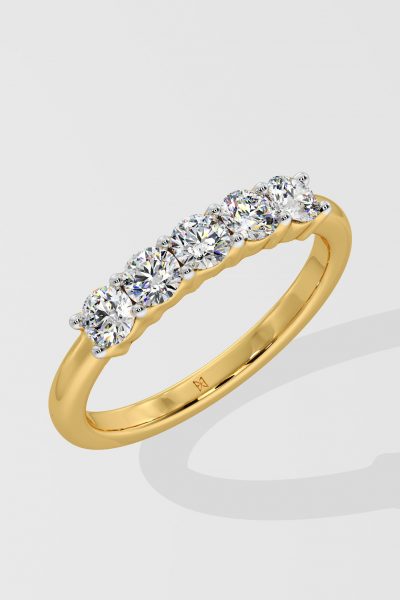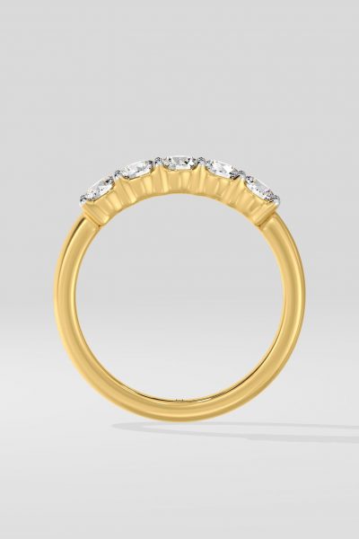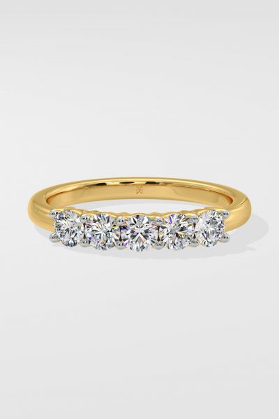 This Band features 5 diamonds of 0.10 ct each. An essential that couples well with your solitaire ring completes the stacked look. Optionally reduce diamond size and increase count to 7 stones match your solitaire ring.