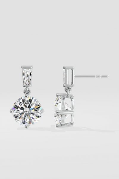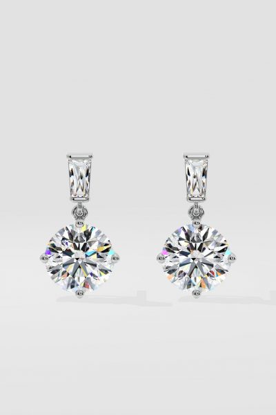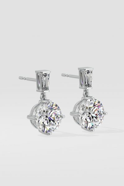 These Solitaire Drop Earrings feature a magnificent 3 ct centre diamond, elegantly suspended from a 0.20 ct tapered baguette diamond. True luxury is when you switch up the solitaire studs and wear them as dangles. A classic, timeless piece which always look lovely.