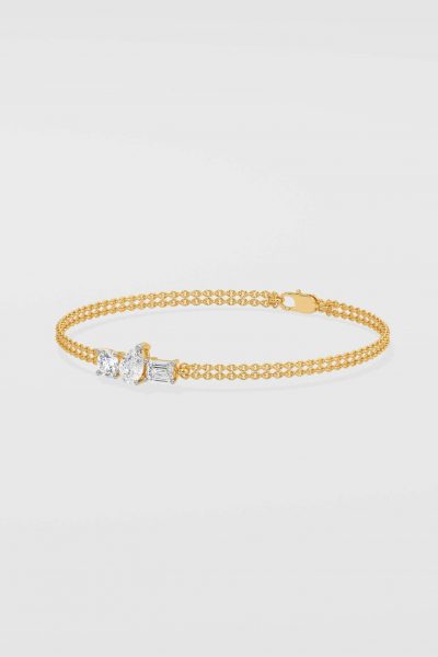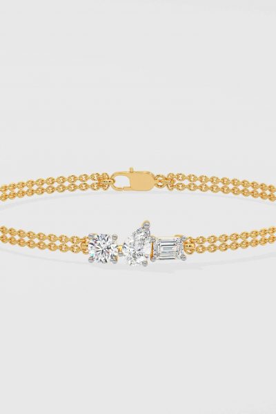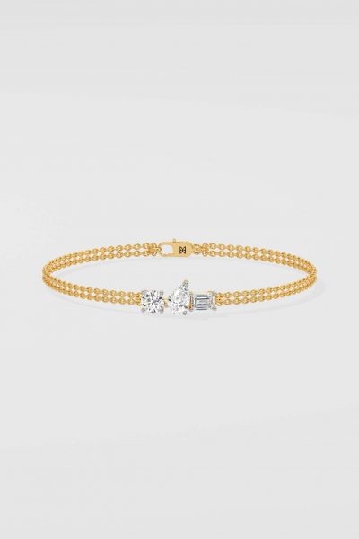 The Beyond Trio Bracelet is light, easy and a minimalist addition to your wrist stack. Featuring three 1/5 ct diamonds stacked together in different shapes and a beautiful double row gold chain. Beyond Classics is where Natasha & HOQ are commingling a cool, casual and effortless style.