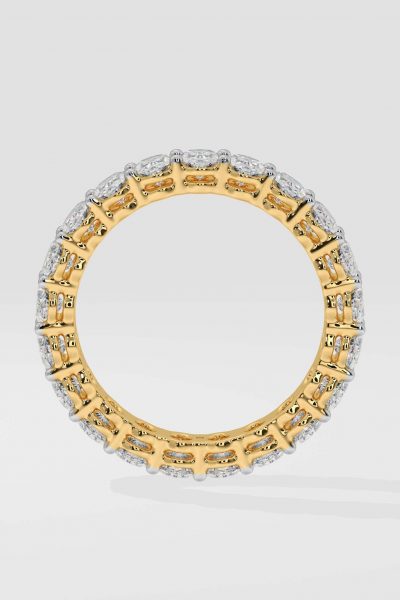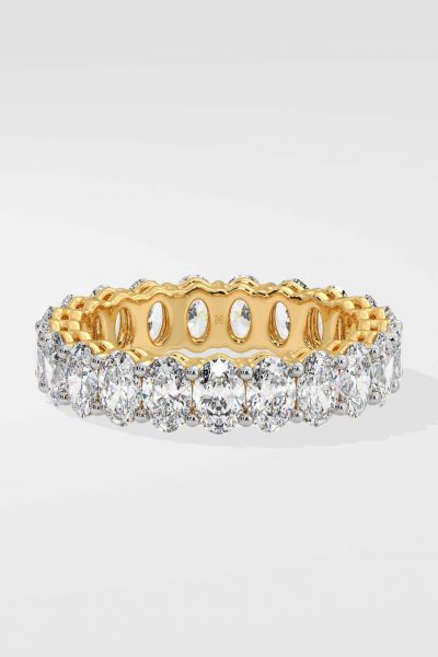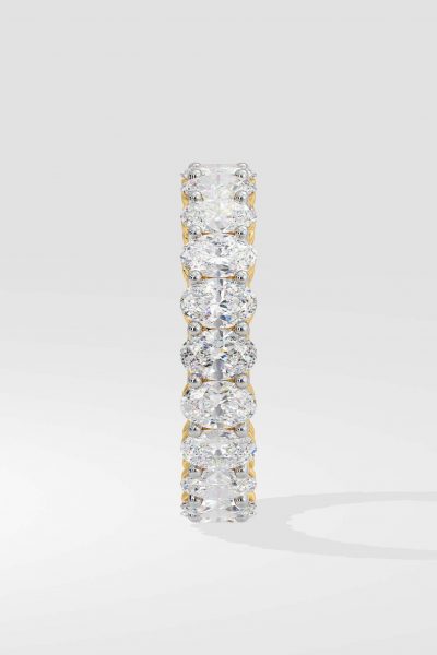 The Oval eternity features 1/5 ct diamonds vertically set end to end. Infinite beauty: eternities are called so because there is no beginning and there is no end. Each ring is customised to your ring size and the diamonds have to be perfectly sized to ensure there is no gap. Combined usually with a solitaire ring, eternities work well as wedding bands as well.