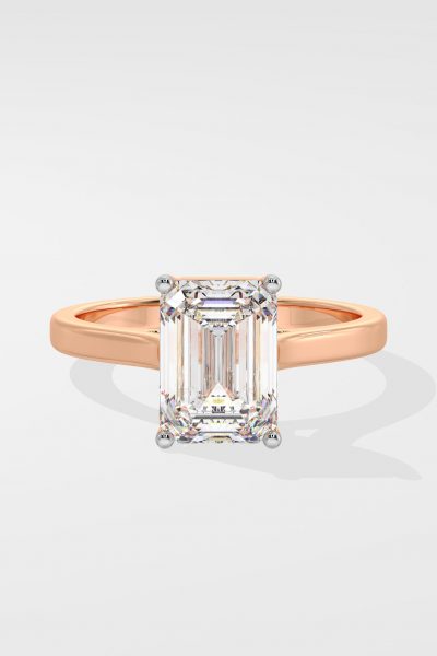 This Classic Solitaire Ring features a 2.5 ct single perfect Emerald Cut Diamond. Choose the perfect piece of minimalist and timeless solitaire for understated luxury. Color options and size options are available per your choice.