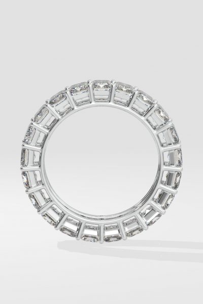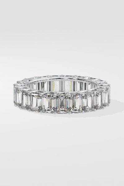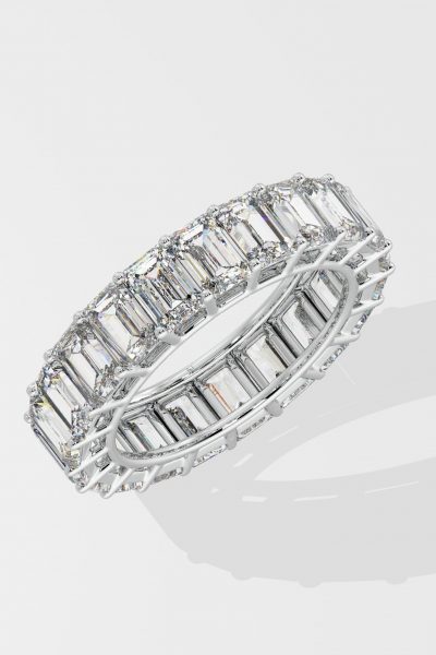 Our Emerald Cut Eternity Ring is a true classic forever piece. 1/3 ct emerald cut diamond set in a prong setting makes this all-diamond piece irresistible. A sophisticated, elegant, and truly luxurious upgrade to your ring stack.