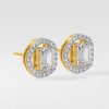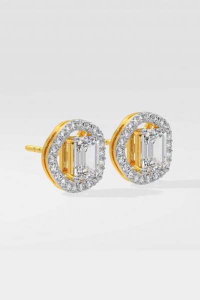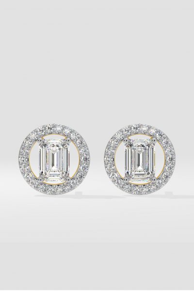 The Solitaire Wave Halo is a combination unlike any other. It has a 3/4 ct center studs + a round Halo to give a fuller look. The Halo is designed as a wave to make the studded diamonds glitter from all angles. Shine whereever you are.
