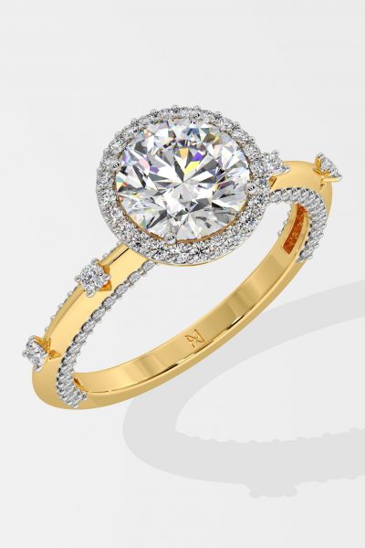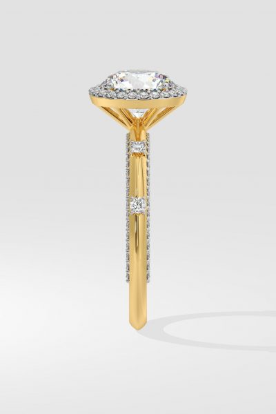 The Halo Spaced Solitaire ring features a 2 ct center with a perfectly studded halo. The halo enhances the look of the round by over 25% making the center stand out. The side diamonds add finesse and exclusivity to this style. A signature style with a signature look, this is HoQ. Product Details