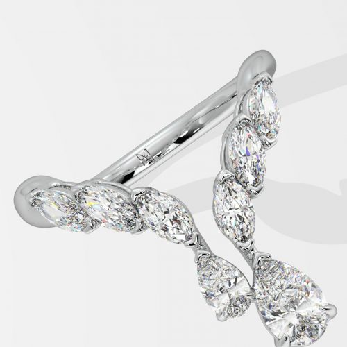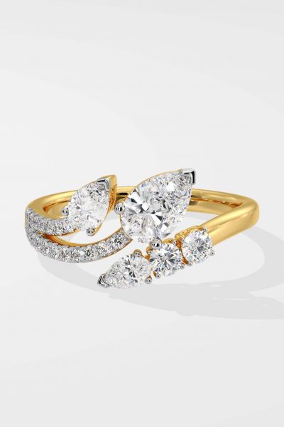 The Double Pear Drop Ring is a combination of Pear & Round diamonds, the larger pear being a 3/4 ct solitaire. A diamond encrusted fashion forward style, this is part of the 2 stone series within Illuminate. With your personality, you’ll always be in the spotlight : Illuminate.