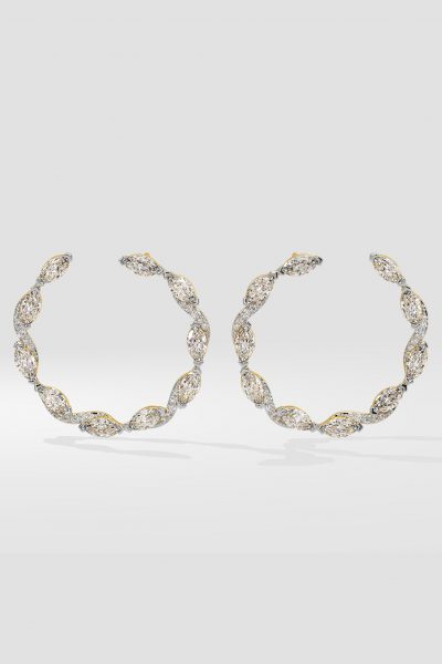 The Marquise Front Hoops are 1/5 ct Marquise diamonds meticuloulsy set in prong setting to provide maximum scintillation. The Illuminate front hoops are a modern twist on the classic hoops, the intent is to allow maximum diamond exposure along with unprecendented attention.