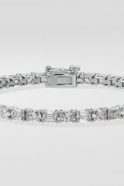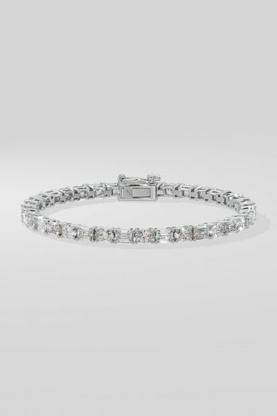 Elevate your wrist game with the all diamond Illuminate Milennia Bracelet. Set in 1/5 ct diamonds alternating between oval and emerald cuts, this is perfect to pair with your everyday watch or to wear stand-alone as well.
