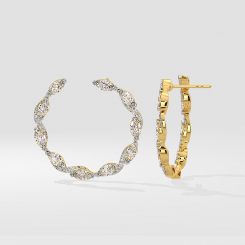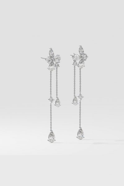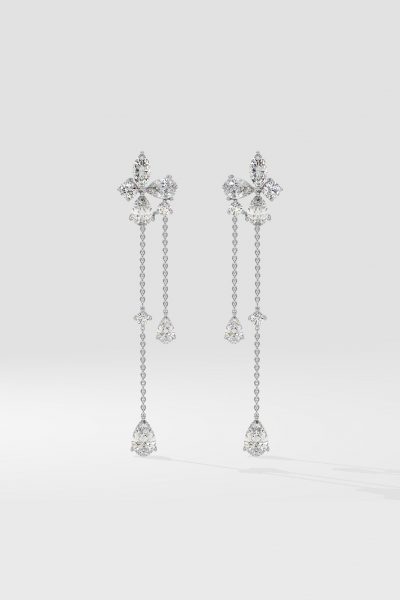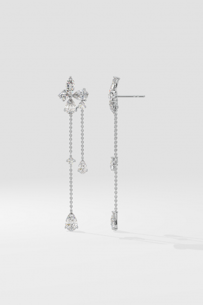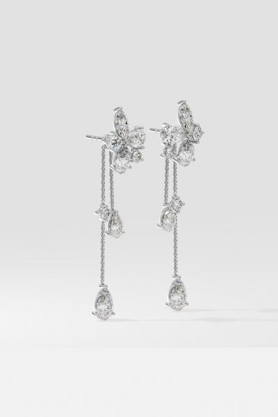 The Ziya Drop Danglers speak delicate elegance; they feature a combination of Rounds, Marquise & Pears in sizes from 1/5 ct to 1/2 ct mini solitaires. The bottom dangle is detachable which allows you to wear this beauty as studs as well. With your personality, you’ll always be in the spotlight : Illuminate.