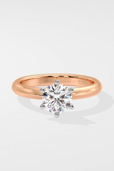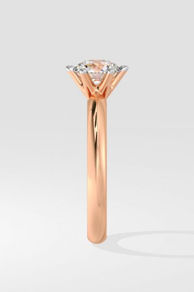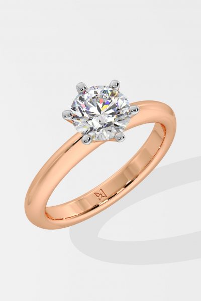 The Six Prong Solitaire features a 1 ct Round centre stone and a smooth curved shank. A timeless expression of classic solitaire ring. Optionally go bigger with a 1.5 ct or a 2 ct diamond also in the same look.