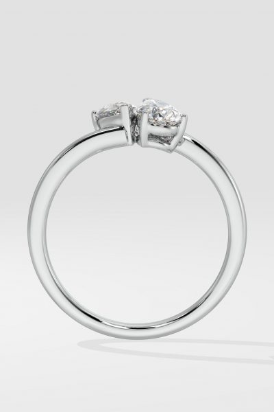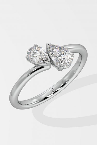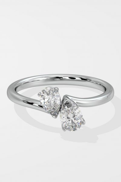 The 2 Stone Pear Ring features a 1/2 ct Pear solitaire with a 1/3 ct pear set in alternate directions. The studded shank adds to the fineness of this double-diamond style. Add to your essentials and make it part of your daily diamond style.