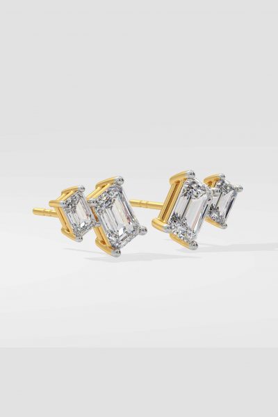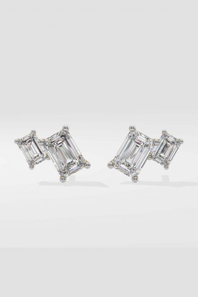 The Emerald Cut Duo Studs combine 1/2 ct & 1/3 ct Emerald cut diamonds. Part of the T-Shirt diamond collection the duos are a twist on the single stud to give a modern contemporary feel for your daily diamond style. Choose these to add to your essentials or gift a loved one something that they will cherish always.