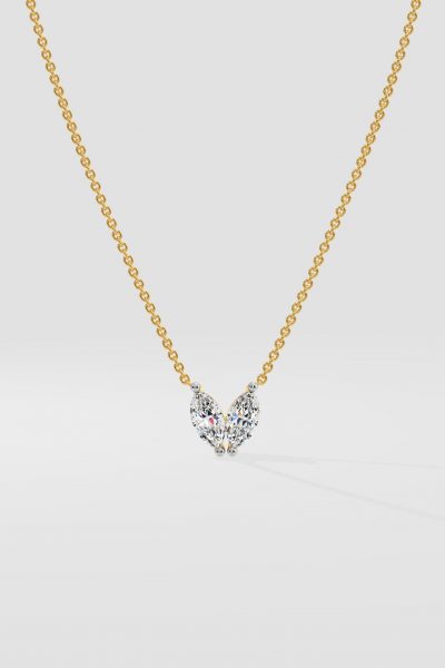 The Marquise Heart Duo Necklace feature 1/3 ct Marquise diamonds. Part of the T-Shirt diamond collection the duos are a twist on the single diamond stud to give a modern contemporary feel for your daily diamond style. Choose these to add to your essentials or gift a loved one something that they will cherish always.