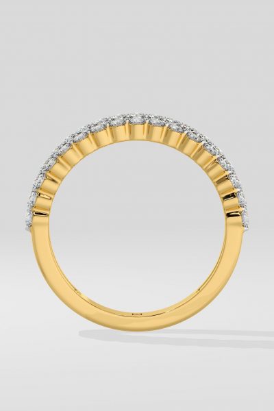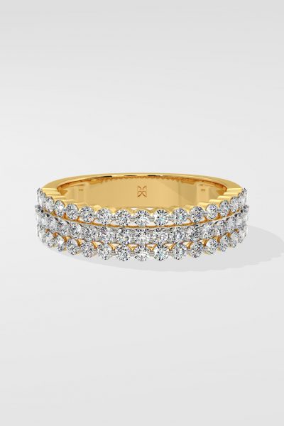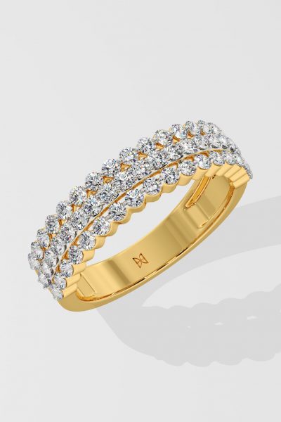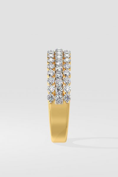 The Triad Diamond Band, is an all time classic band featuring three rows of small diamonds. This band’s refined design makes it perfect for everyday wear. Its subtle sparkle and sophisticated style make it a versatile addition to any jewellery collection.